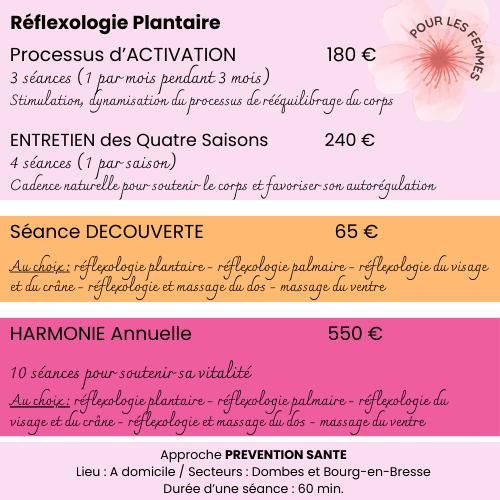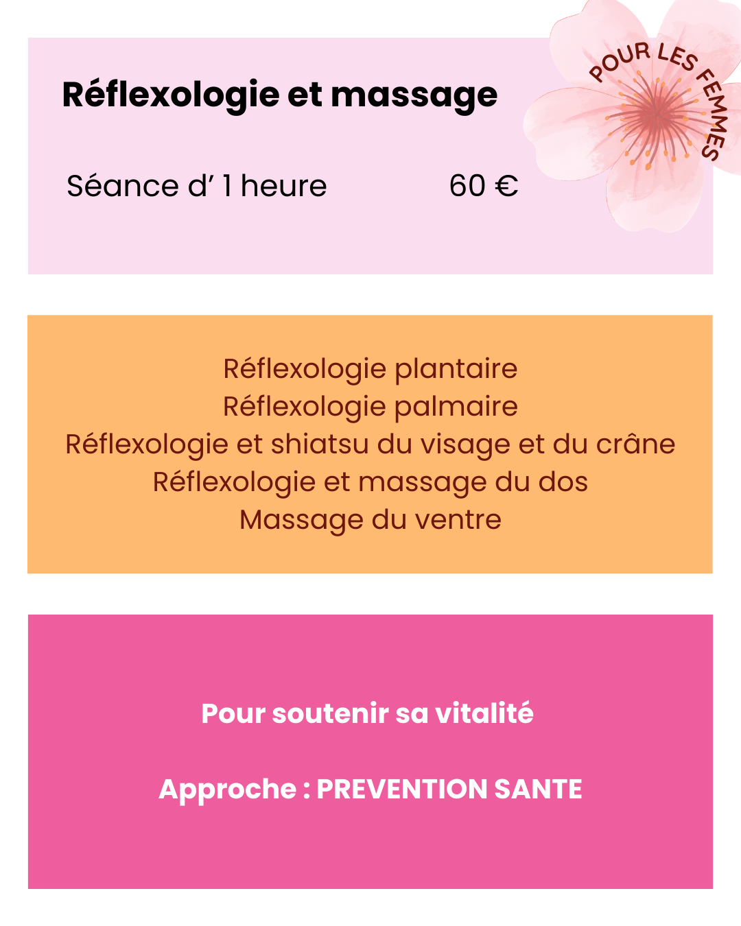 Je propose, aussi, des séances de réflexologie et de massage pour soutenir le corps physique dans la traversée des épreuves de la vie et pour favoriser ses capacités à se détendre et à s’autoréguler au quotidien.